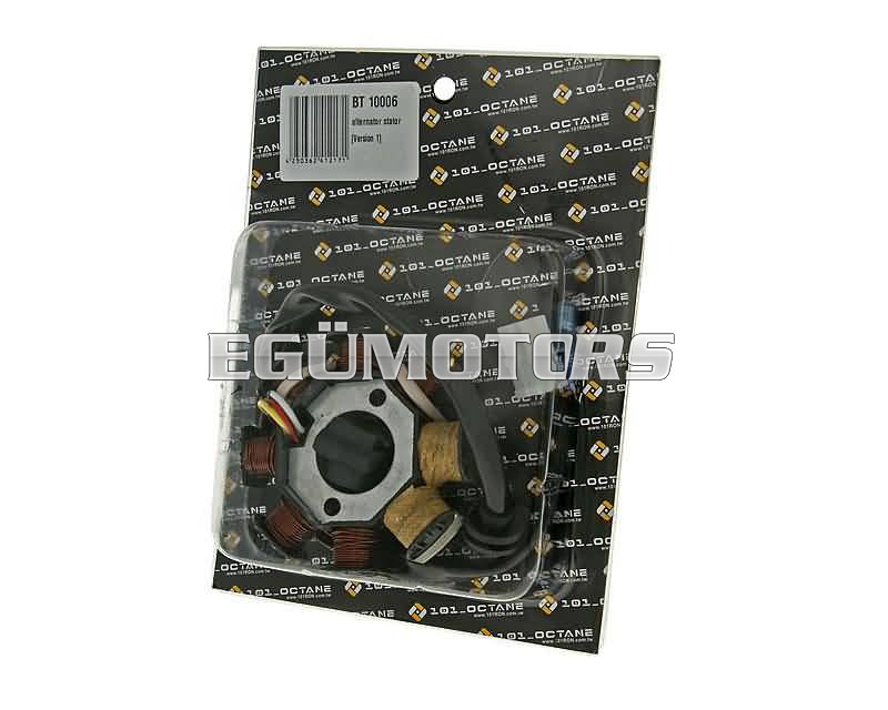 Ezek az alternátorok jelenleg 2 különböző verzióban érhetők el. A különbség az izolált tekercsekben van; az 1-es verzió 2 izolált tekercset tartalmaz. A különbség pontosabban a 2. termékfotón látható. A fő csatlakozó ezen a verzión 2 vagy 3 tűs lehet. A képen az 1-es verzió látható.