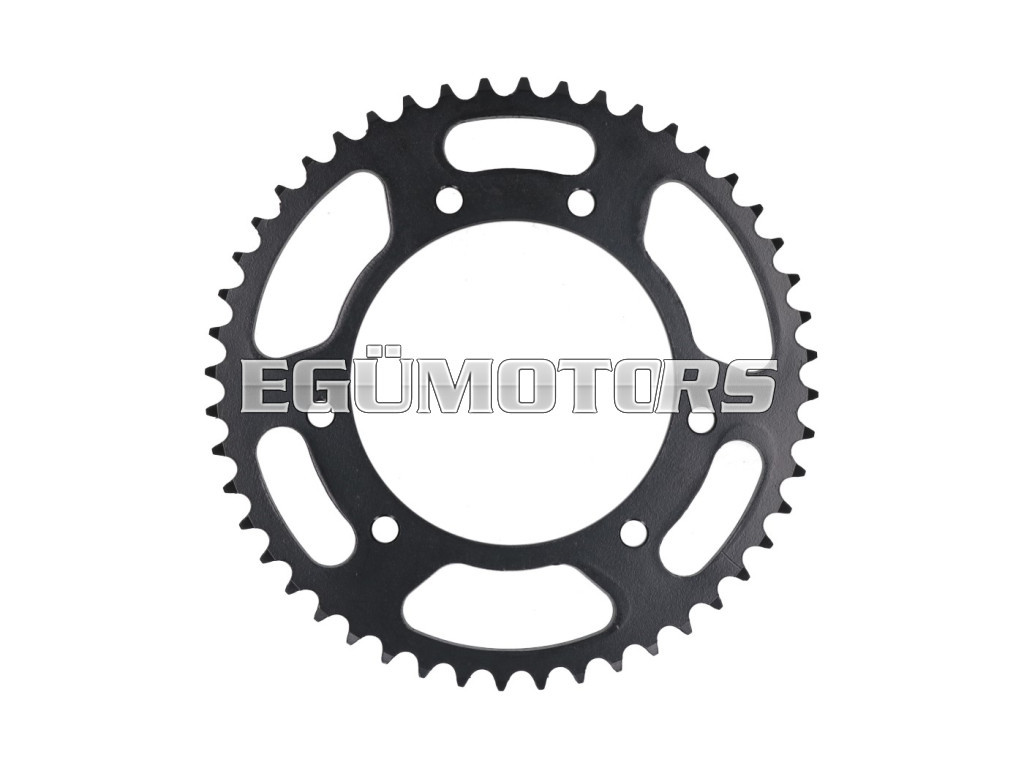 101 octane hátsó lánckerék, 48 fog, 420-as, alkalmas Derbi, Aprilia, Motorhispania, Rieju, Malaguti és Yamaha váltós motorokhoz.