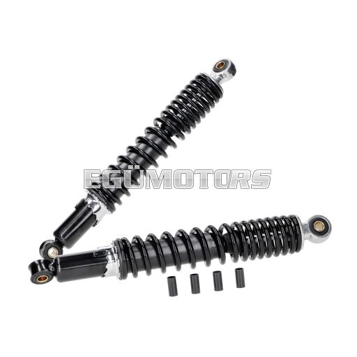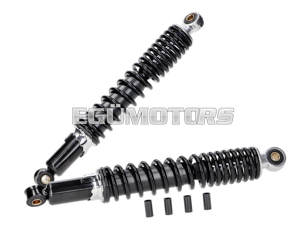 Egy pár fekete hátsó lengéscsillapító, különböző mopedekhez.
