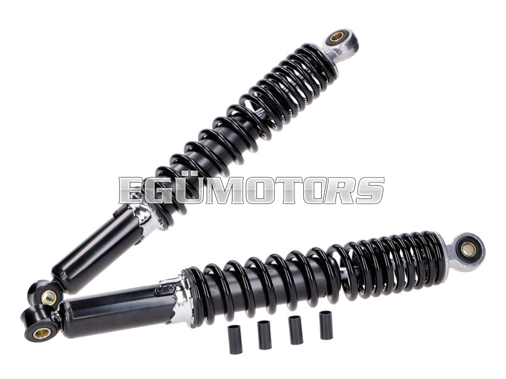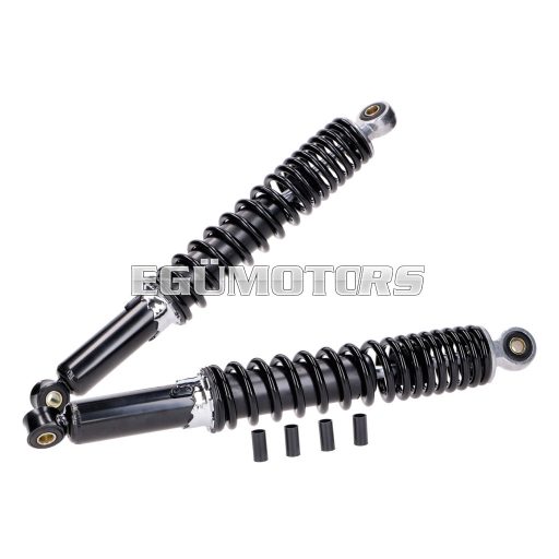 Egy pár fekete hátsó lengéscsillapító, különböző mopedekhez.