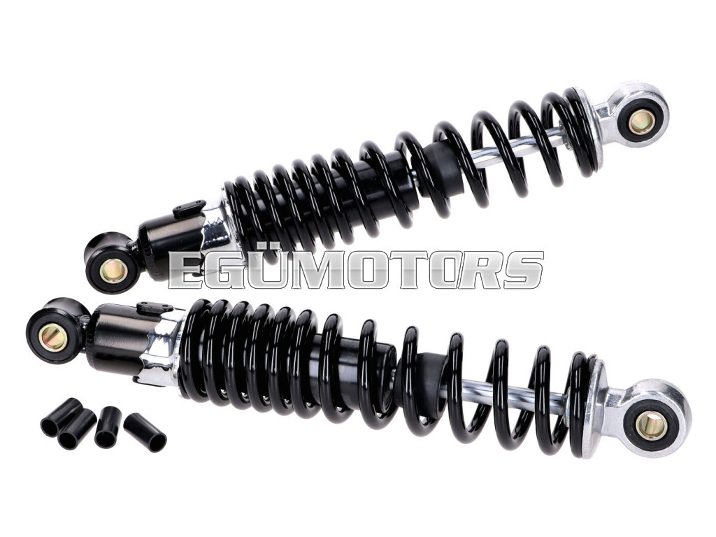 A lengéscsillapítók krómozott kivitelűek, fekete festett rugóval, és 280 mm hosszúak (a rögzítési pontok középvonala között mérve). A csomag egy pár lengéscsillapítót tartalmaz.
