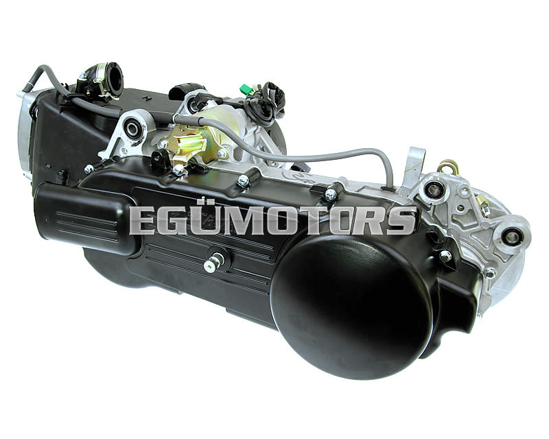 Komplett csere-motor GY6 125cc 4-ütemű 152QMI motorokhoz hosszú blokkos változattal és hátsó tárcsafékkel.