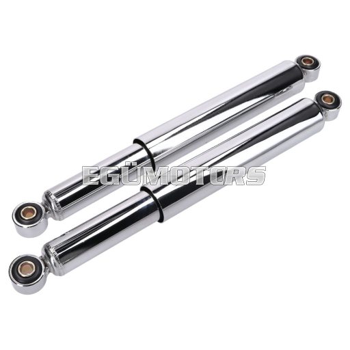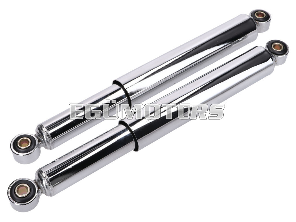 Egy pár krómozott felületű lengéscsillapító. Egy párra, azaz kettő darabl engéscsillapítóra vonatkozik az ár.