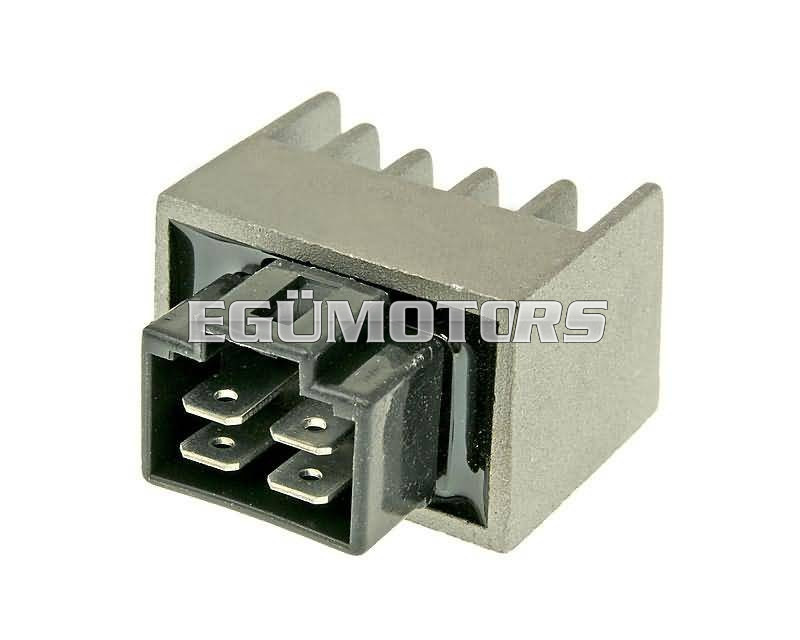 A feszültségszabályzó/egyenirányító átalakítja a generátor által termelt váltakozó feszültséget a motorokban használt 12V-os egyenfeszültséggé, és egy bizonyos tűréshatáron belül tartja a feszültséget. Ezáltal tölti az akkumulátort és biztosítja például, hogy az izzók ne égjenek ki.