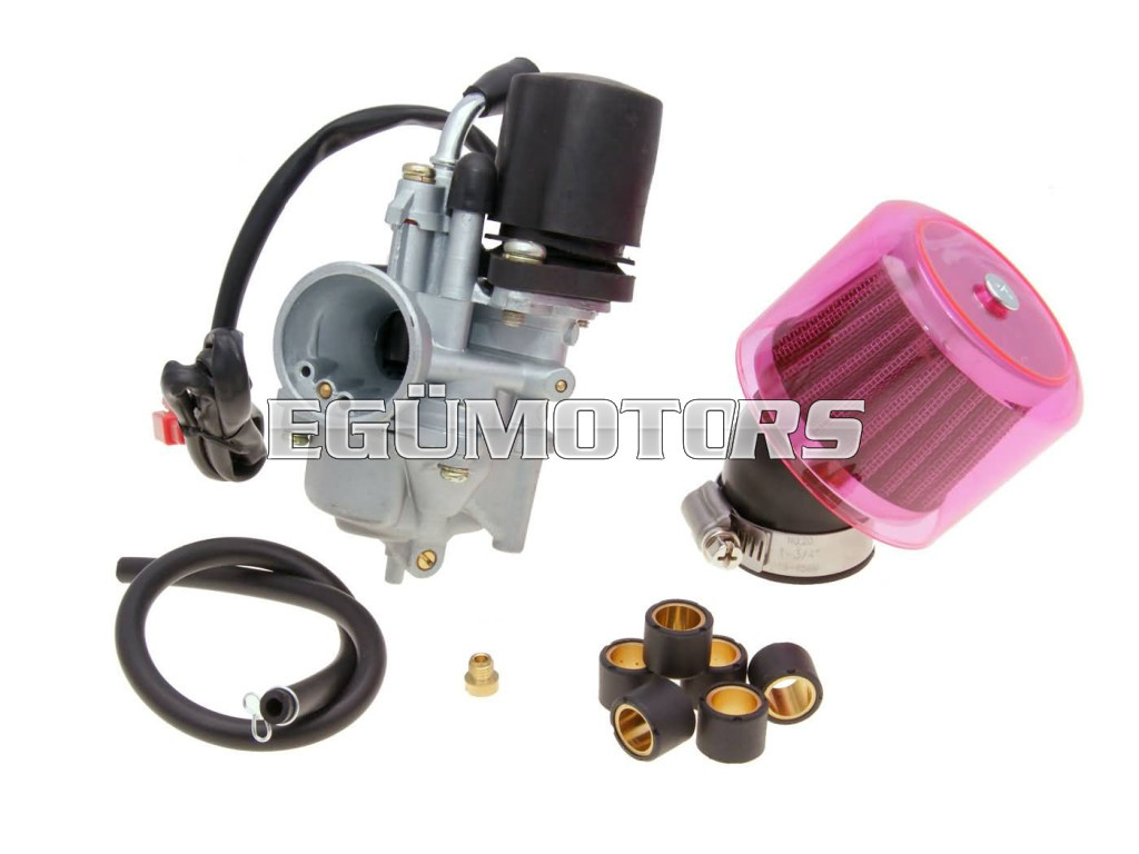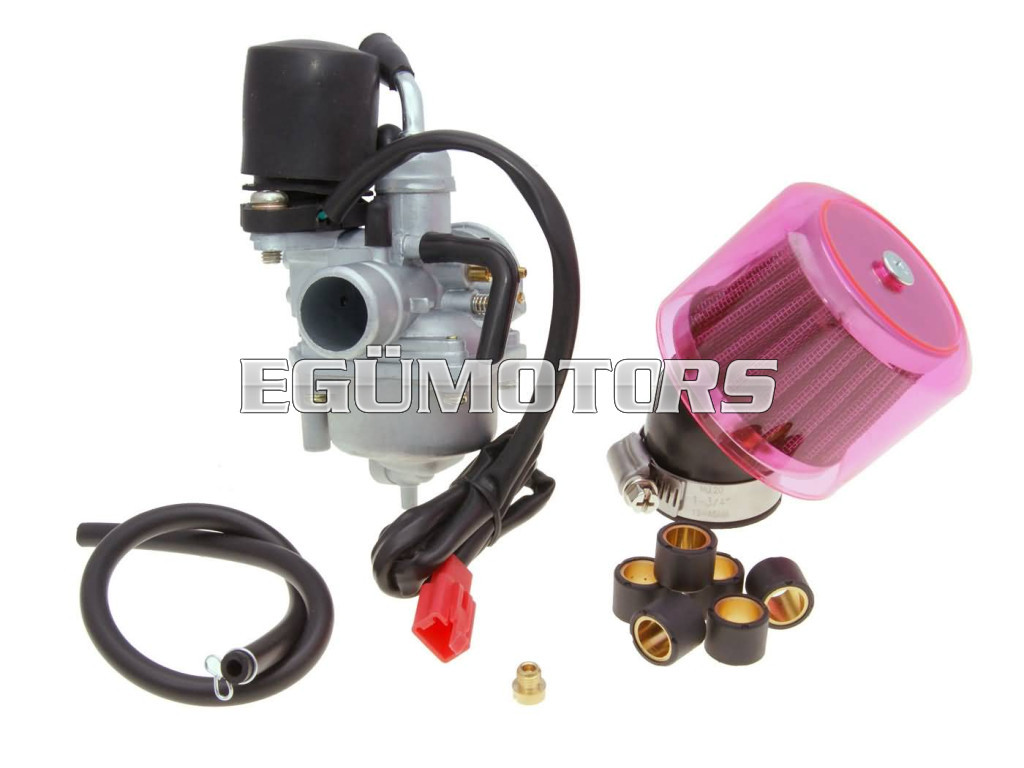 Ideális tuning célokra 50ccm motoros robogókhoz vagy 70cc sport hengeres járművekhez. A karburátor elektromos szivatóval és 75-ös főfúvókával van felszerelve.