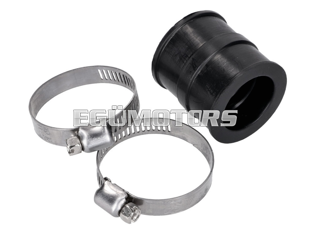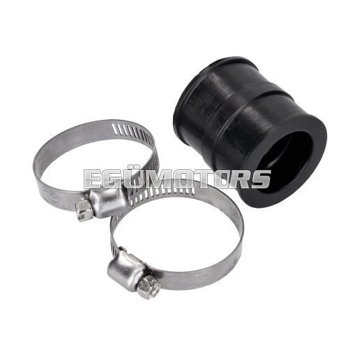 Karburátor csatlakozó gumi 23 mm belső átmérővel és 36 mm teljes hosszúsággal. A szett két bilincset is tartalmaz, amelyek lehetővé teszik az alkatrész egyszerű felszerelést legfeljebb 21-es karburátorokra.