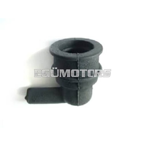 Eredeti Aprilia alkatrész, olajtartály kifolyó gumi csatlakozó. 90 fokos (derékszögű) kialakítású. D=16 mm (tartály csonkja) d=10 mm (olajcső belső átmérője) Az alkatrész kapcsolja az olajtartályt és az olajcsövet össze. Gyakran elszakadó, tönkremenő gumiközdarab. Cseréje nem igényel különösebb szakértelmet.