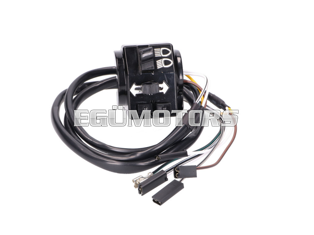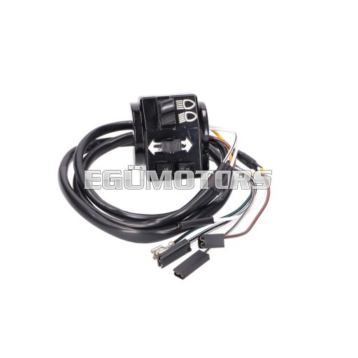 Felhelyezett kapcsolóegység irányjelző kapcsolóval, tompított / távolsági fényszóróval és pár gombbal, kábelköteggel.