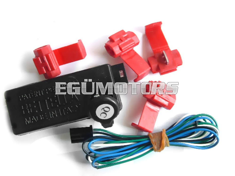 - Zöld vezeték: a CDI-hez kell kötni (Piaggio: piros, Honda/Peugeot/Kymco: sárga-kék, Minarelli: piros-fehér)