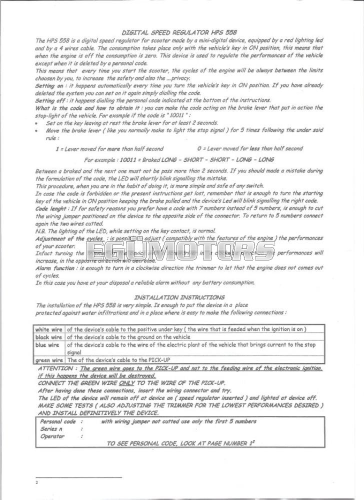 Digitális sebesség szabályzó: HPS 558. A HPS 558 egy digitális sebesség szabályzó robogókhoz, egy piros jelzőleddel és egy négyeres kábellel felszerelve. Takarékos szerkezet, melyet egyszerűen a gyújtáskapcsoló elfordításával működésbe hozhatunk, ha a motor nincs gyújtáson, a készülék nem fogyaszt áramot.
