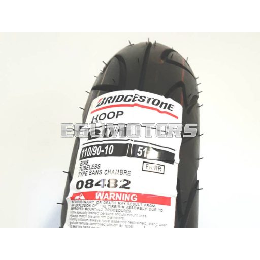 Bridgestone tömlő nélküli külső gumi, B01-es mintázat, 110/90-10-es méret. 08482 a Bridgestone cikkszáma.
