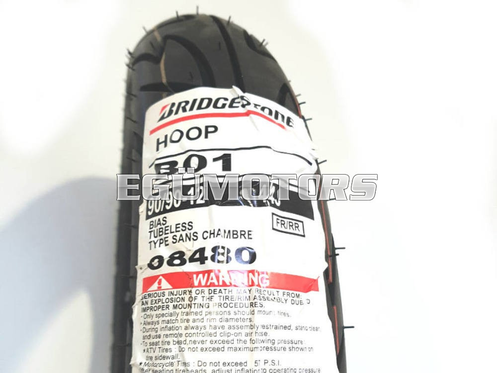 Bridgestone tömlő nélküli külső gumi, B01-es mintázat, 90/90-12-es méret. 08480