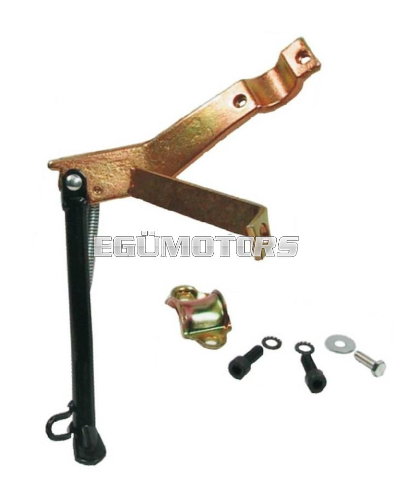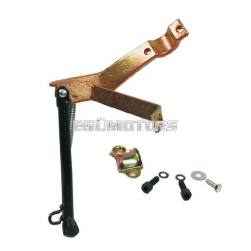 Buzzetti gyártmányú, jó minőségű robogó oldalsztender. Feketére festett, vasból készült utángyártott alkatrész.
