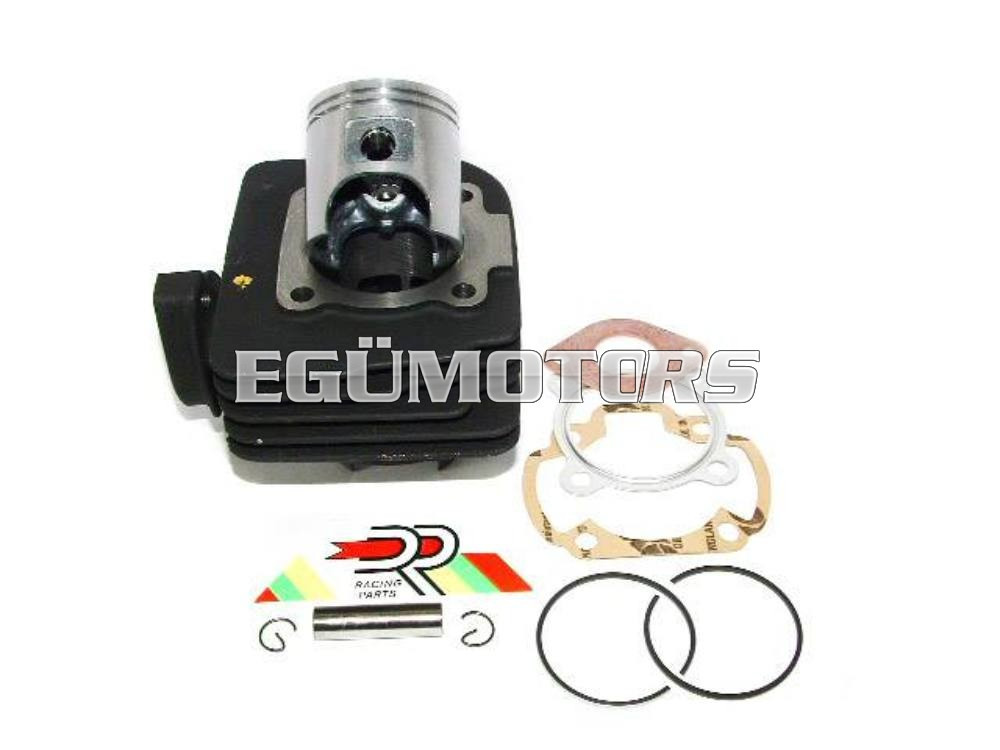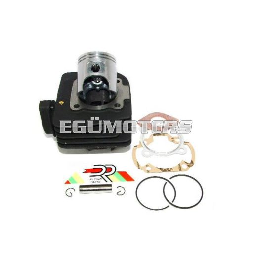 70 ccm-es, léghűtéses öntöttvas szett. A henger furata 46mm-es, 5 felömlős kialakítású.