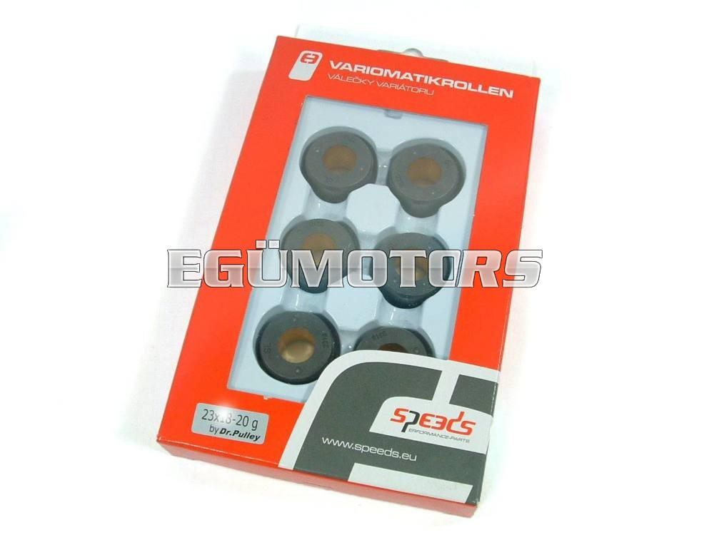 Maxi robogó görgőszett. A taiwani Dr. Pulley a legendás lelapolt görgői mellett gyártja a kerek görgő típust is. Szintén legendás minőségben és kopásállósággal. A görgők speciális önkenő műanyag héjazatot kaptak, mely a tökéletes váltást és a hosszú élettartamot biztosítja. Robogó versenyzők által is tesztelve!
