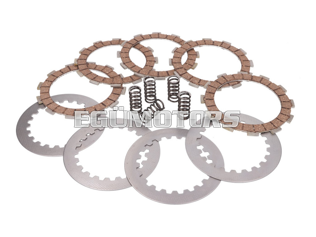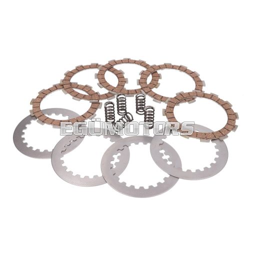 A 101 octane erősített kuplungtárcsa kit. Kopó és fémlamellákat is tartalmaz rugókkal.
