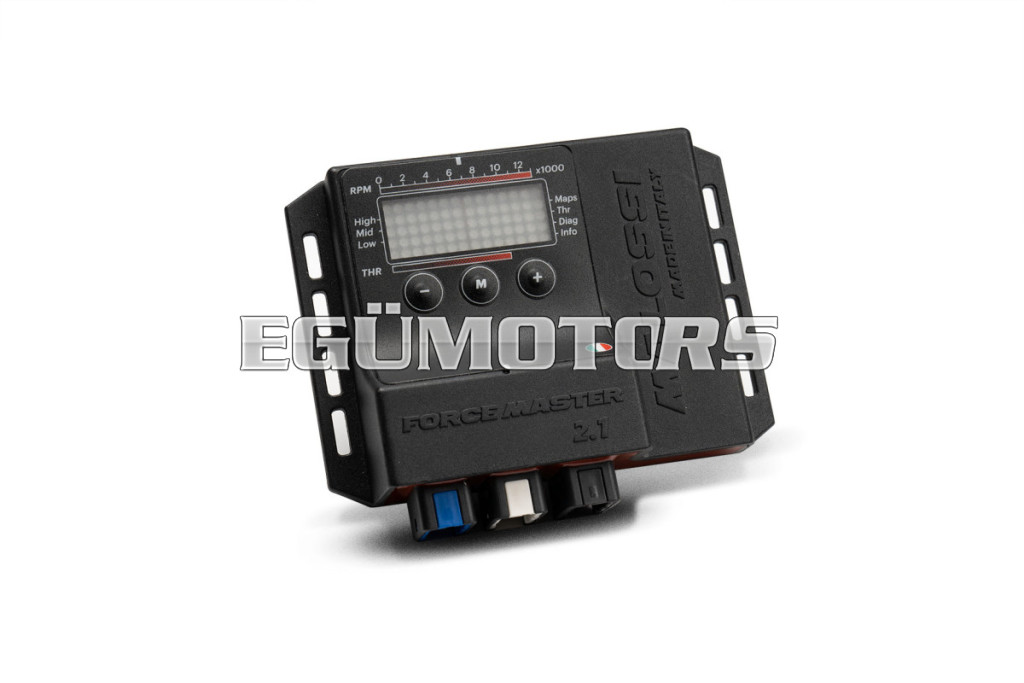 With an all-new look, the Force Master 2.1 control unit is much easier to configure. Making products more ergonomic and easy to use has always been a Malossi goal: Force Master 2.1 is a contemporary, adequate and super performing product. With an interface for the K and CAN communication lines, a new user interface and the addition of a capacitive ignition input, Force Master 2.1 is the ideal complement for vehicle performance management: without functional limitations, it allows the engine to be pushed beyond the barrier of the original rev limiter.