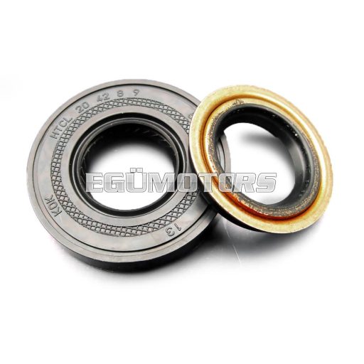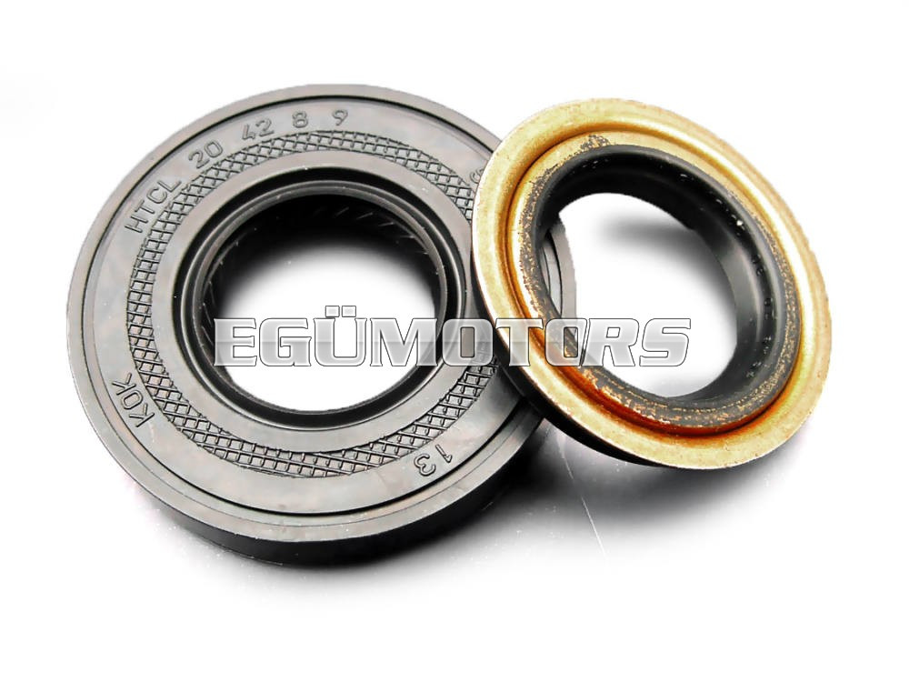Minőségi gyártmányú szimmeringszett. Tartalmaz 2db (jobb és bal oldali), minőségi főtengely szimmeringet. Ezt a szettet a vízhűtéses és léghűtéses robogókhoz egyaránt lehet használni felújítás céljából, ha a főtengely tömítettsége nem megfelelő. A termék minősége azonos a gyárival.