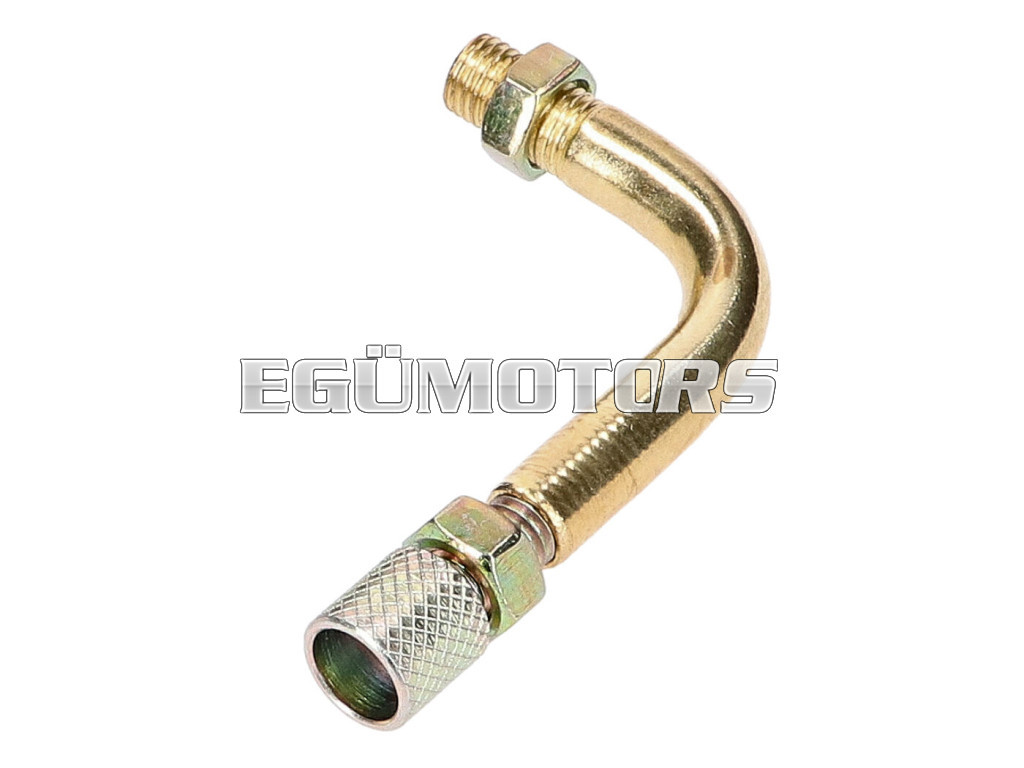 Gázbowden könyökcsatlakozó Bing karburátorhoz, M6x0.75-ös menettel és 90°-os hajlítással. A készlet tartalmazza a vezetőcsövet, anyákat és a rögzítőcsavart.