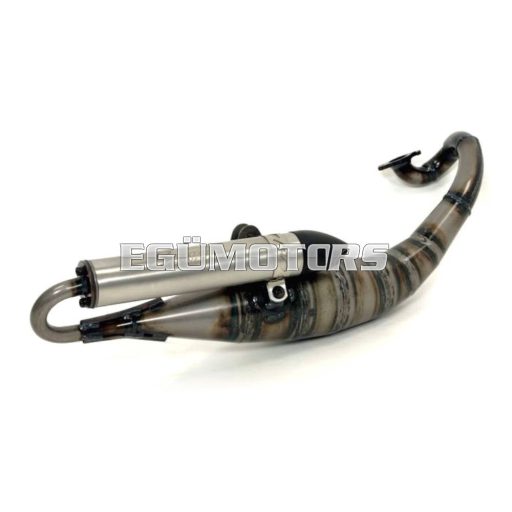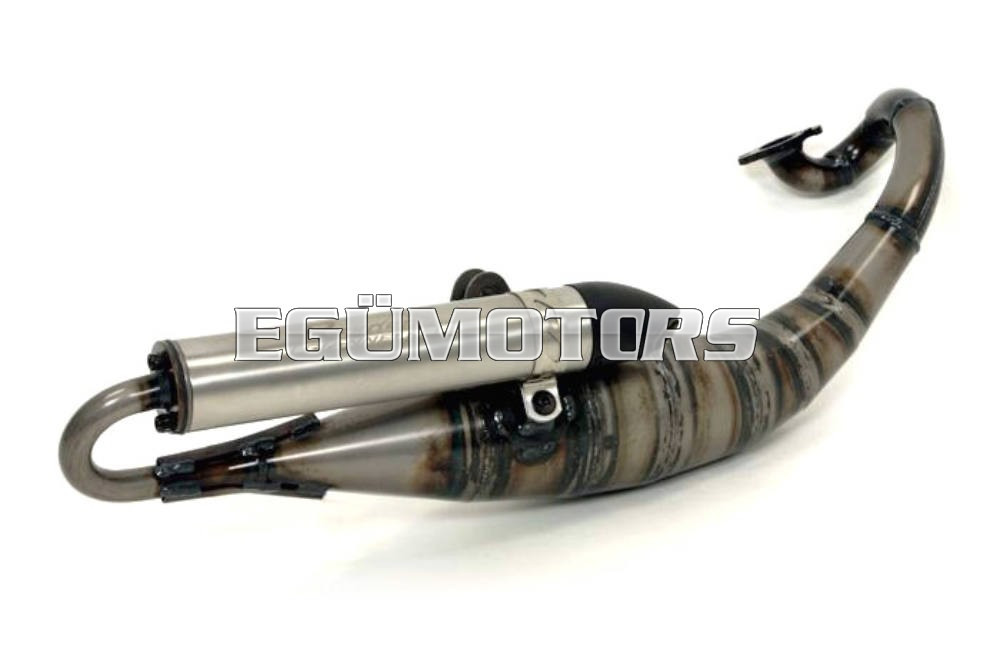 Az olasz gyár a már jól bevált Reverse típusát dolgozta át! A kipufogótest felépítése a Reverse-hez képest változatlan, anyaga is maradt a 10/10-es acél. A hangtompítót esztétikus rozsdamentes acélburkolattal látták el, a felirat lézergravírozással került bele. Sportos, agresszív design + magas teljesítmény. 15x12-es 5.5 grammos görgő jár hozzá. Jól harmonizál a 70 cm3-es öntöttvas, sport hengerszettekkel, 9-11 lóerős teljesítmény érhető el vele.