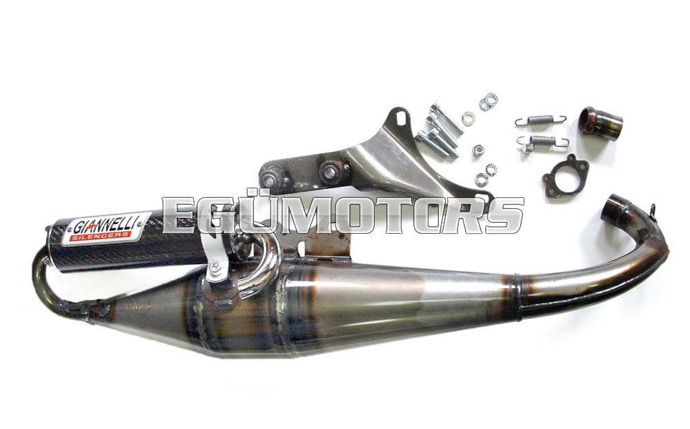 Giannelli Shot - karbonvéges, nagy teljesítményű versenykipufogó. Magas minőségű termék, különleges acélból, karbon véggel. A rezonátortest felépítésében megegyezik a Top Nardo-val.
