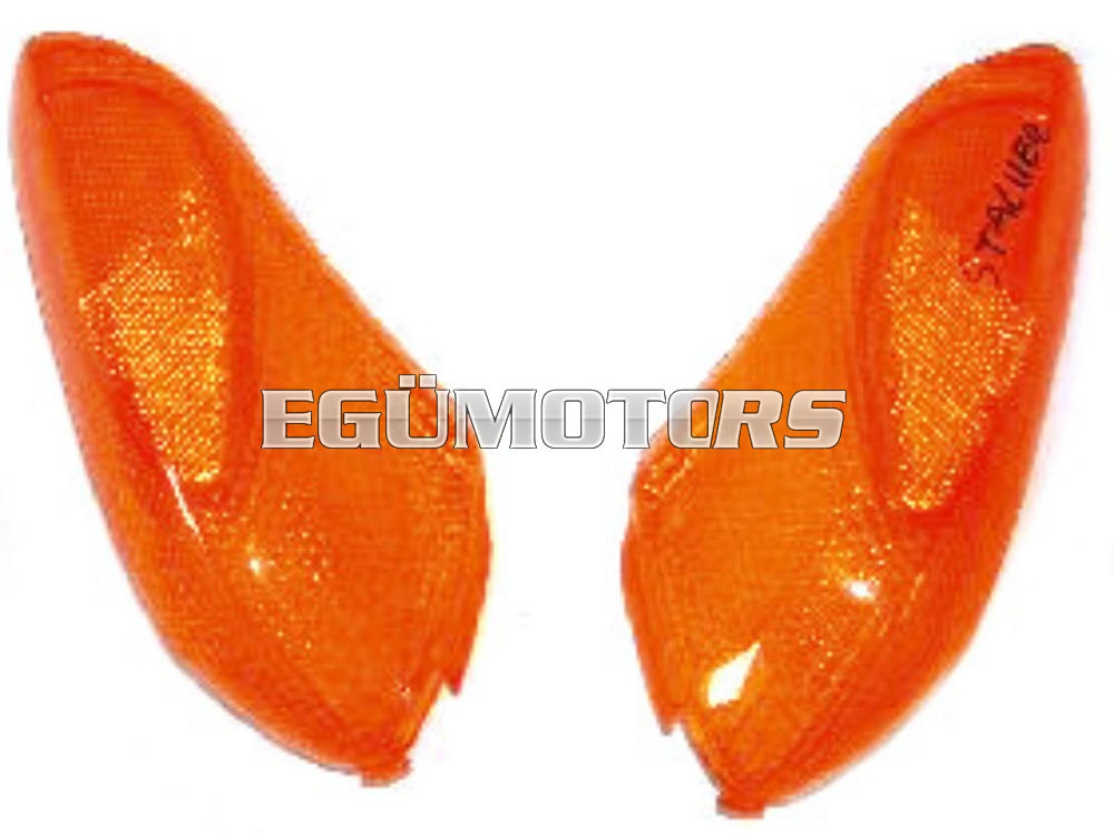 Gilera Stalker robogóhoz, eredeti, olasz gyártmányú sárga hátsó index búra, beépített fényvisszaverő prizmával.