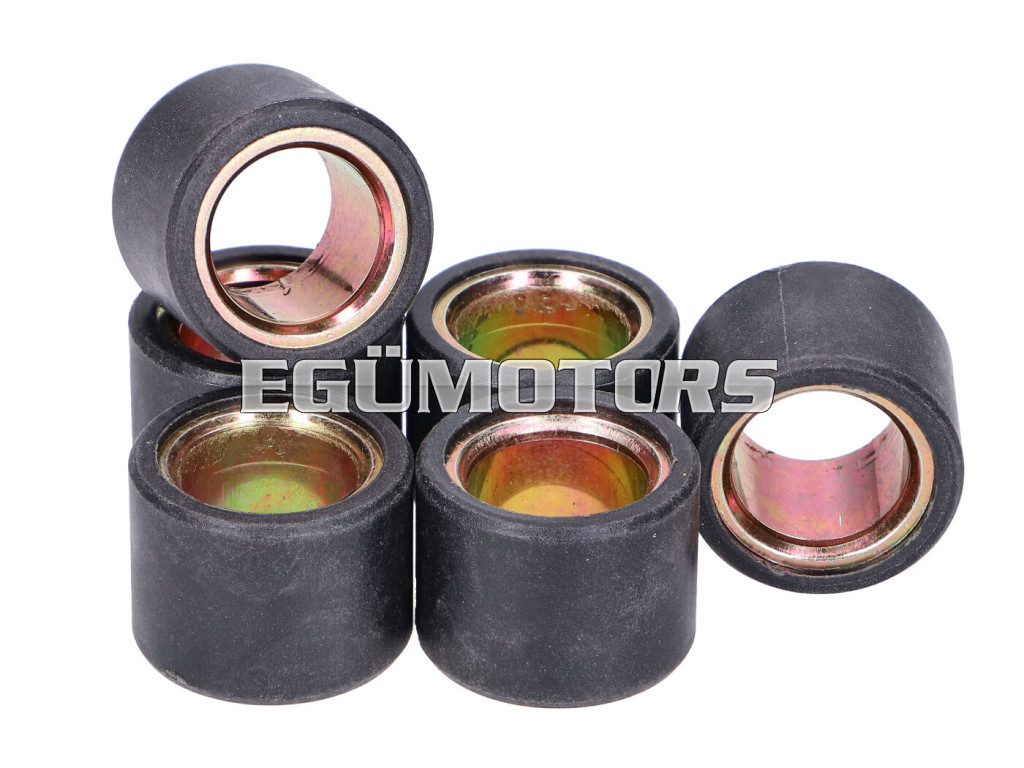 Variátorgörgők 125cc-től maxi robogókhoz, standard minőségben. A jármű típusától és méretétől függően 6 vagy 8 darab görgőt tartalmaz a csomag. A biztonság kedvéért kérjük, válassza ki a megfelelő görgőket a kínálatból; a dobozon is fel van tüntetve a darabszám. A variátorgörgők számos különböző méretben és súlyban elérhetők. Sok járműgyártó és tuning variátor gyártó eltérő méretű görgőket alkalmaz.