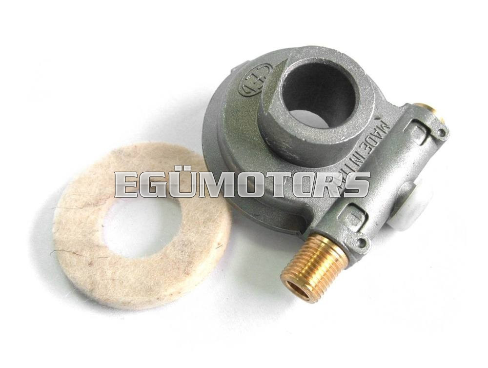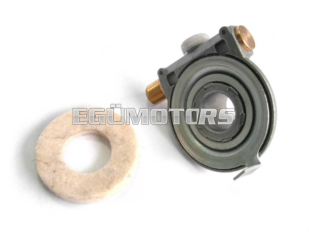 A meghajtón található kis műanyag sapka olajzó furatot takar, minden 1000 km megtétele után pár csepp kenőanyag lényegesen meghosszabbítja az alkatrész élettartamát. A szett tartalmaz egy filc korongot is, amit a kerék és a meghajtó közé helyezve megakadályozza a szennyeződések bejutását.