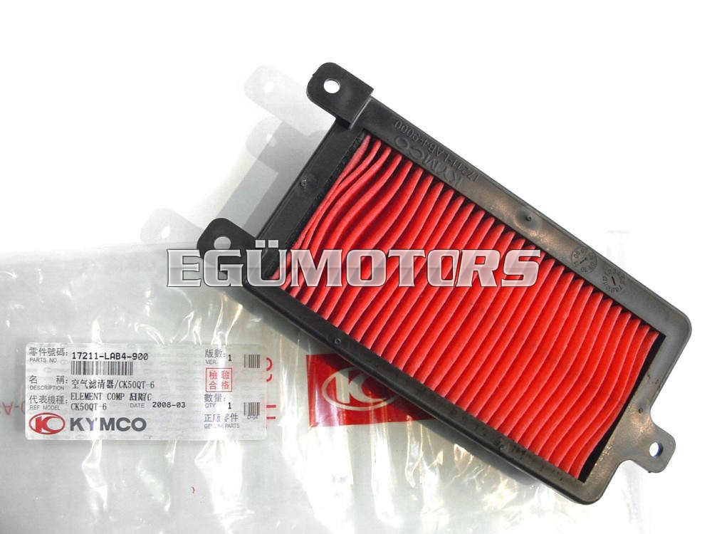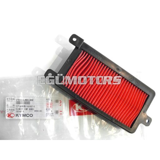 Kymco, gyári, papír légszűrőbetét műanyagházban, Agility City 50-hez és sok más típushoz. Ha a piros rész erősen szennyezett akkor cserére szorul.