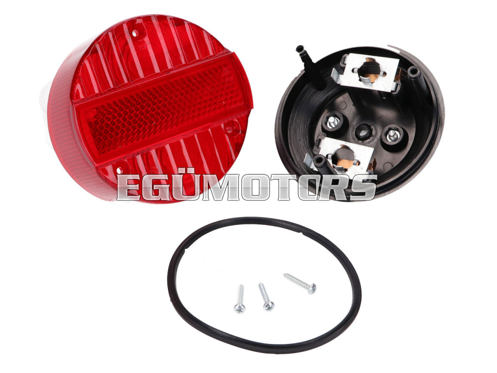 120mm átmérőjű hátsó lámpa (3-csavaros változat), rendszámtábla világítással, alkalmas Simson és MZ járművekhez.