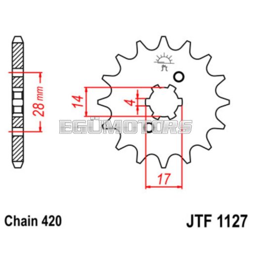 JT első lánckerék, 14-fogas, 420-as lánchoz. Régi Derbi blokkos motorokhoz