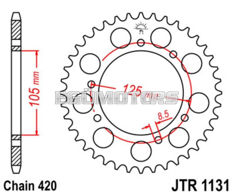 JT hátsó lánckerék, 60-fogas, 420-as lánchoz. Derbi blokkos motorokhoz.