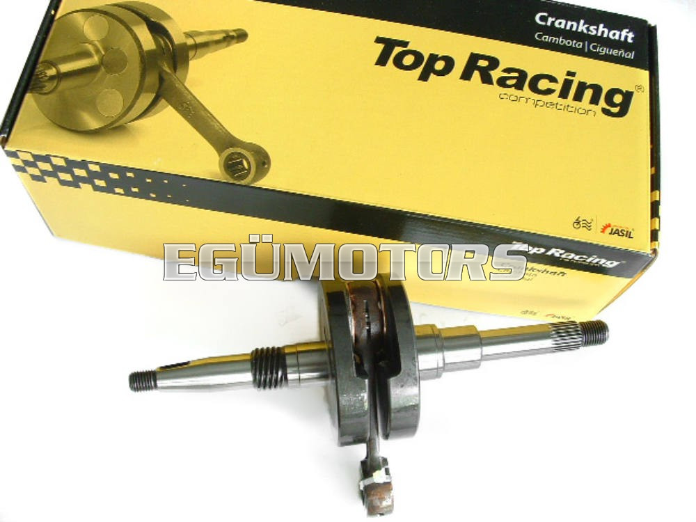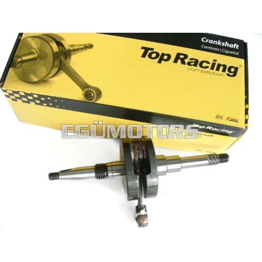 "Original" Top Racing, portugál (nem kínai), jó minőségű főtengely. Fekvőhengeres lég-, és vízhűtéses Kymco robogókba. Pontosan, precízen megmunkált, gyári minőségű alkatrész. Használható öntöttvas, 70 ccm-es hengerekhez is.