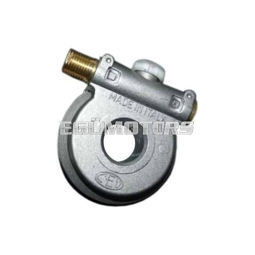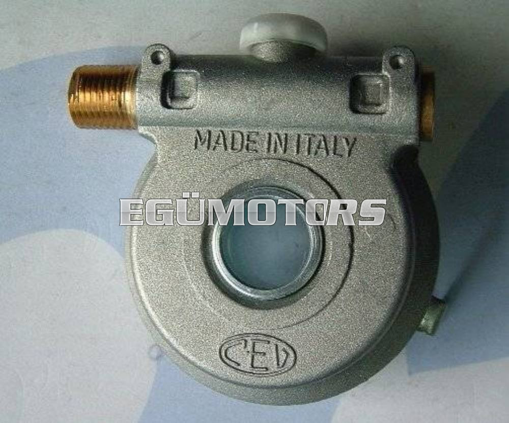 Komplett KM meghajtó csiga. CEV olasz gyártmány. A furat 12.3 mm-es, a meghajtó vastagsága 14.7 mm, a spirál csatlakozásánál a menet 10mm átmérőjű.