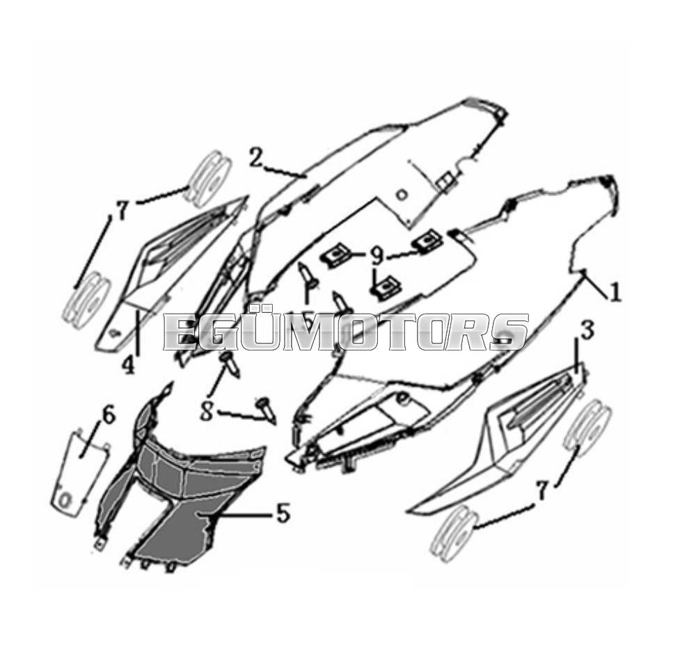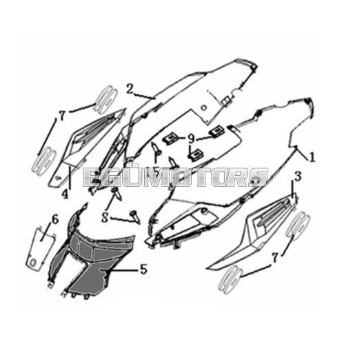 Keeway alkatrész, 5-ös számú, ülésalatti idom, fekete színben.