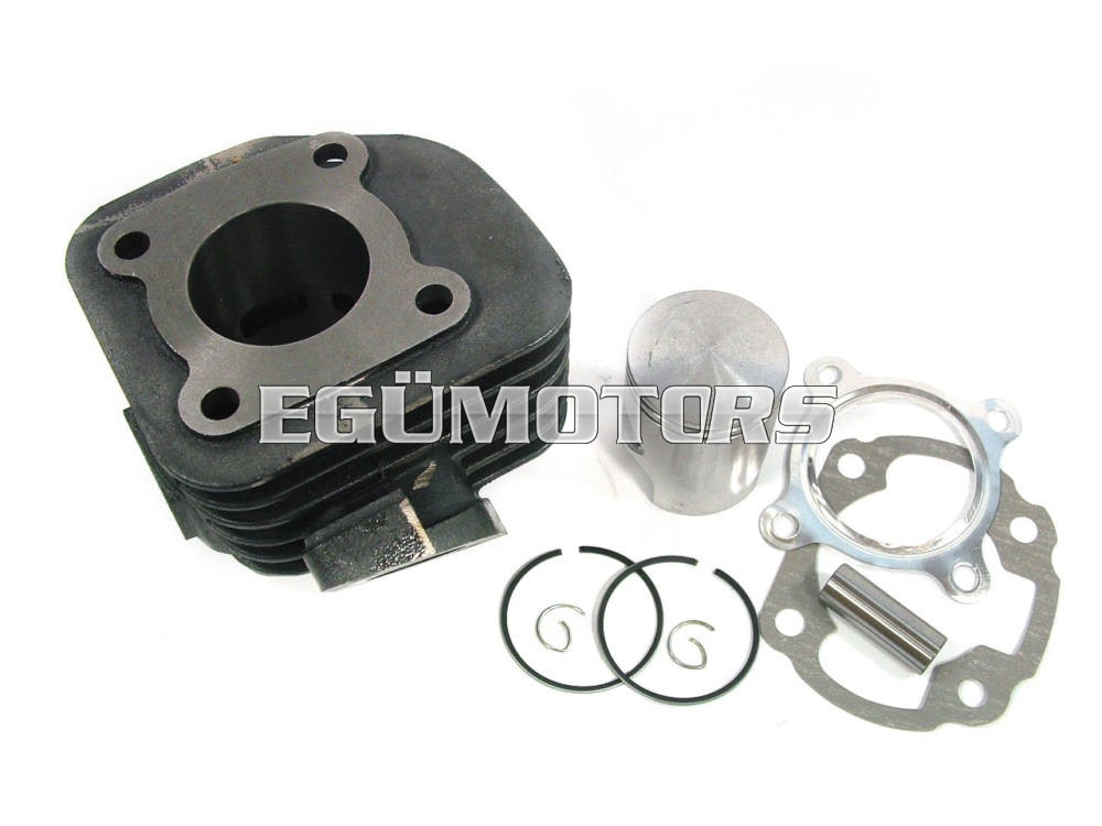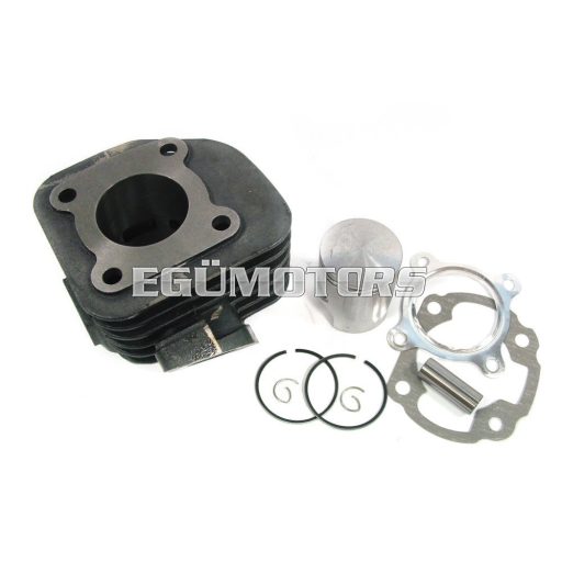 A szett a következő alkatrészeket tartalmazza: 1db öntvény henger, 1db dugattyú, 1db hengerfej tömítés, 1db hengertalp.töm, 2db zéger, 1db csapszeg, 2db dugattyú gyűrű