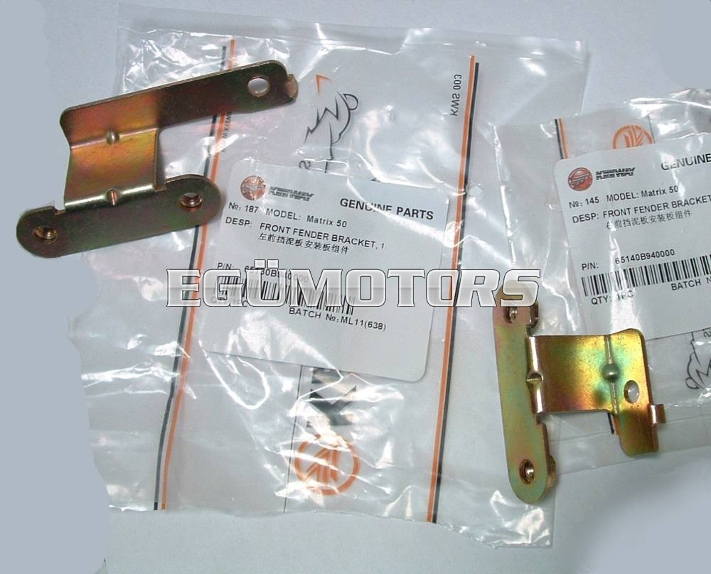Keeway Matrix első sárvédőt tartó felületkezelt fémkonzol. Ez a két alkatrész rögzíti a sárvédőt a villaszárra.