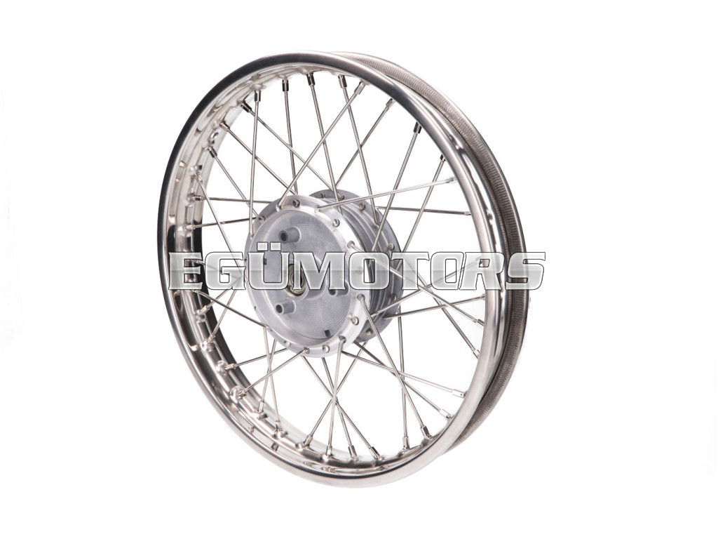 Küllős kerék 1.60 x 16 hüvelyk, rozsdamentes acél, alumínium aggyal és egy készlet rozsdamentes acél küllővel.
