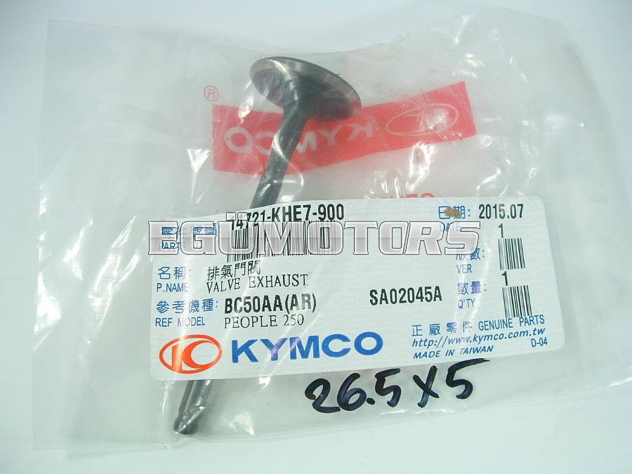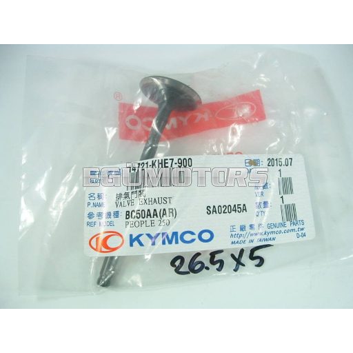 Kymco Kipufogó szelep. A szelepszár átmérője 5mm, szeleptányér 26.5mm.