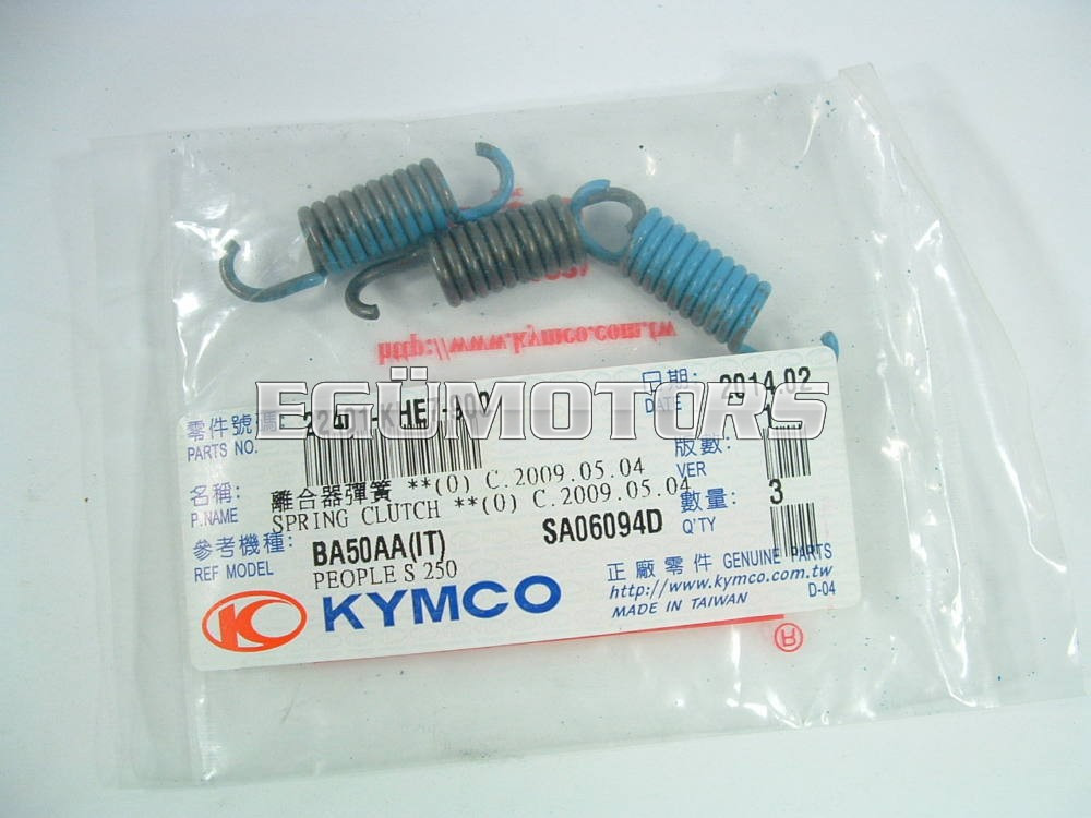 Kymco gyári, 3 darabos kuplungrugó szett. Ezt az alkatrész akkor cserélendő, ha kinyúlik, vagy eltörik. Törés esetén nem érdemes késlekedni, a törött darab további károkat tehet a motorban. 22401-LFG2