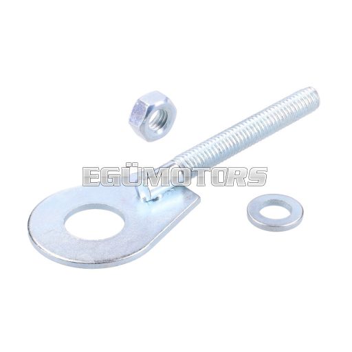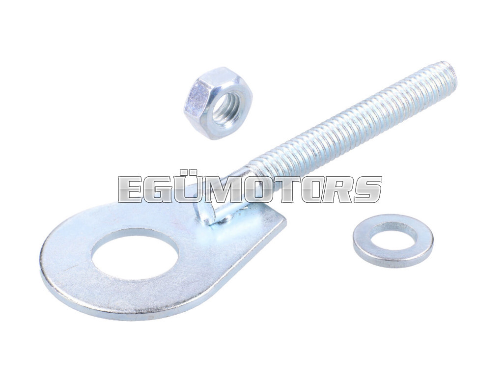 Horganyzott, M6 menetes láncfeszítő, alkalmas Simson S50, S51, S53, S70, S83, SR50, SR80, KR51/1 Schwalbe, KR51/2 Schwalbe, SR4-1 Spatz, SR4-2 Star, SR4-3 Sperber, SR4-4 Habicht robogókhoz.