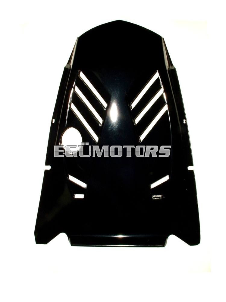 Fényes fekete, anyagában színezett műanyag idom.