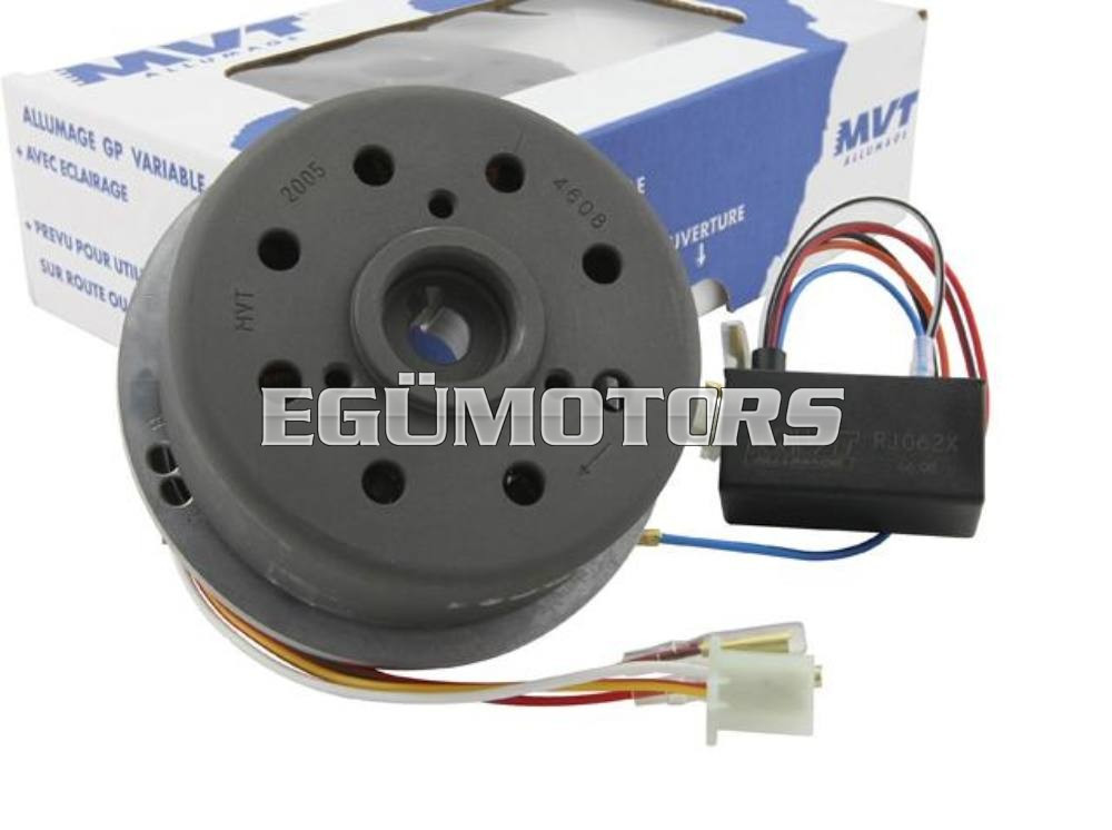 A híres MVT tuning gyújtás gyártó az MVT Millenium nevű gyújtásrendszerével olyat alkotott, mely a felső kategóriás tuningok elengedhetetlen tartozéka. Az összes MVT lendkerék finoman centírozott, valamint speciális szerkezetű, könnyített és egyben erősített (60 grammal könnyebb mint a gyári). Hevesebb fordulatfelfutás jellemzi, továbbá bírja az akár 15.000 rpm-es fordulat tartományokat, nem szakad szét. Amennyiben jól állítjuk be az alapelőgyújtást, úgy a motorunk már álló helyből, alacsony fordulatról jelentősen nagyobb erővel rendelkezik.