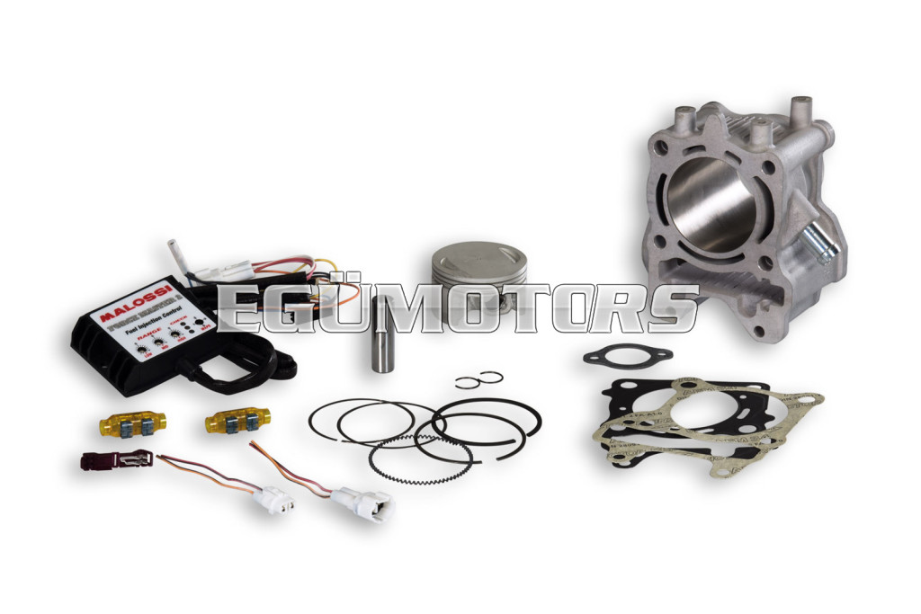 | 3117560 | 61 | 57.9 | 169.2 | 11.4:1 | 5517563 | 0 - 125cc with kit Malossi ø61 + Original exhaust system 1 - 125cc with kit Malossi ø61 + Malossi exhaust system with db killer 2 - 150cc with kit Malossi ø61 + Original exhaust system 3 - 150cc with kit Malossi ø61 + Malossi exhaust system with db killer |