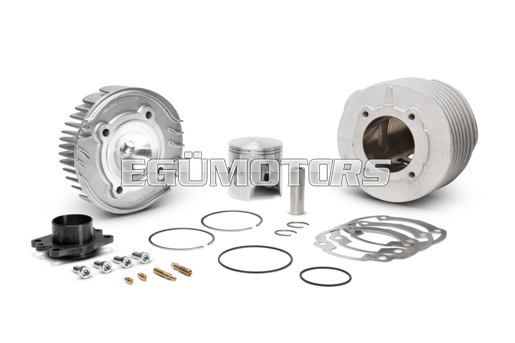 Built from scratch, in high-strength aluminium alloy and cylinder sleeve with nickel-chromium coating. Consisting of an even thickness central core around the cylinder sleeve and the ports, a constant heat exchange is ensured, therefore, a controlled intake temperature of the gases in the chamber and an optimal heat exchange at the exhaust. It has aerodynamically profiled cooling fins around the core, designed to be penetrated with the best possible efficiency by the cooling air. The major innovation lies in the totally revamped and coated ports, introducing the latest CVF, upgraded thanks to experience gained from competitions. There are now 7 ports, a distinctive trait of Malossi kits, thank to which you can get the best fluid dynamic performance.