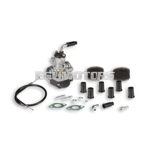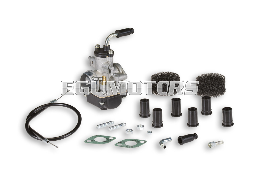 Carburettor with elastic connection (B) and adjusting screws on the left (S).