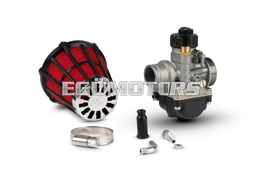 Technical features: Carburettor with elastic connection (B) and adjusting screws on the left (S).