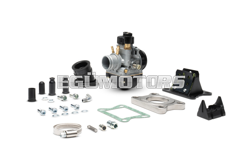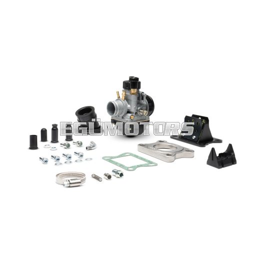 The greatest innovation of these new Malossi carburettor kits is the modular intake manifold. It allows to rotate the manifold into the flange according to the specific requirements of ones own vehicle, in order to identify which is the best angle for fitting the carburettor.