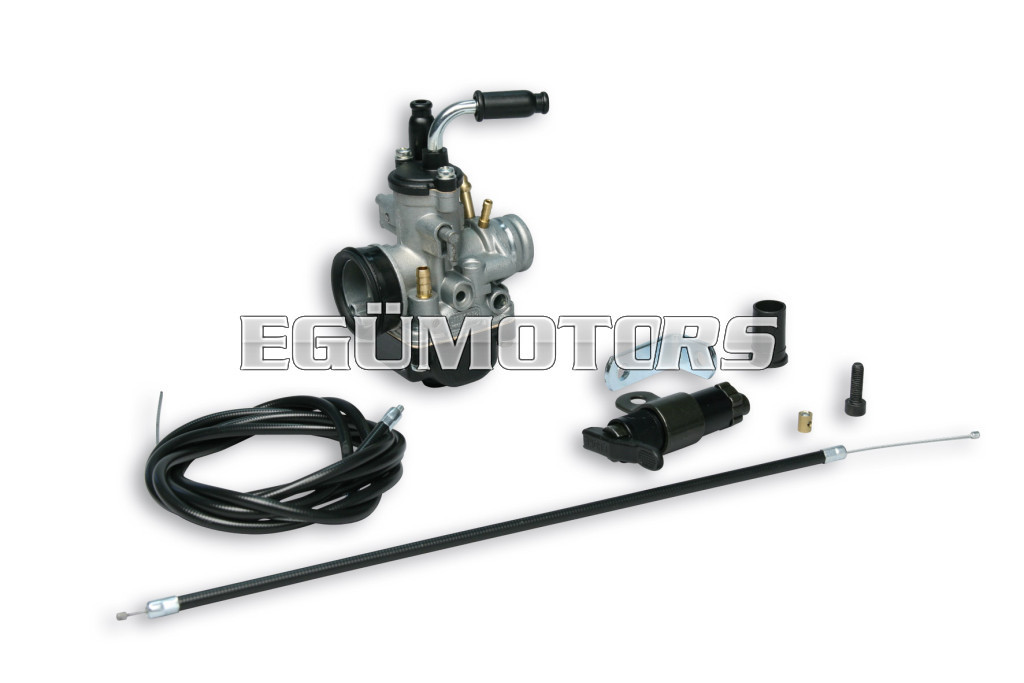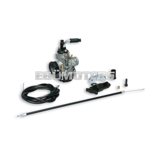 Carburettor with elastic connection (B) and adjusting screws on the left (S).