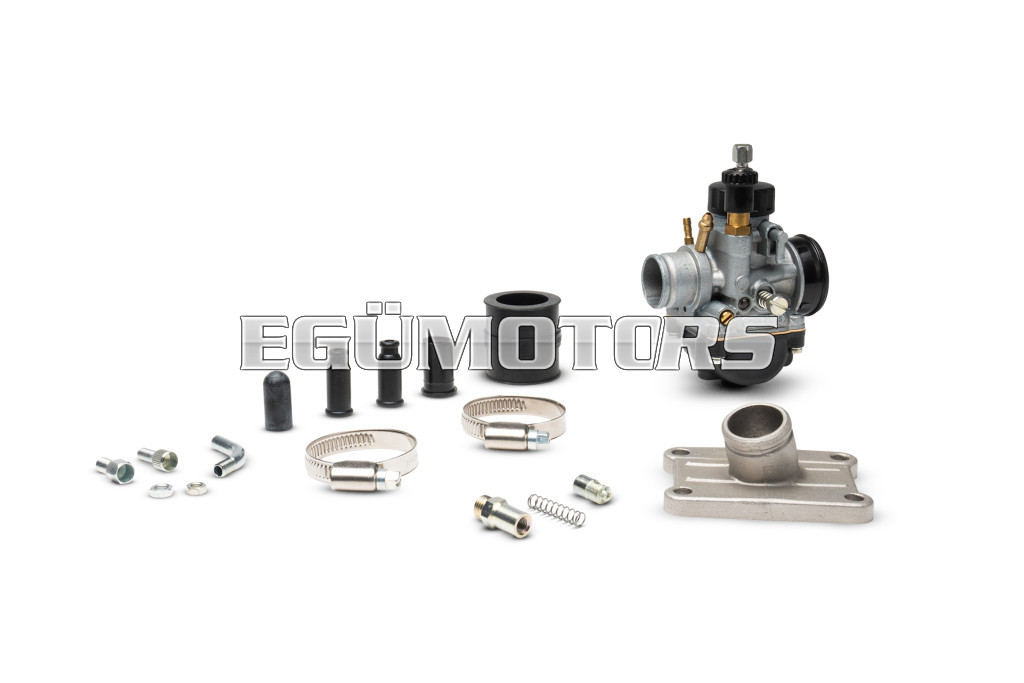 Carburettor with elastic connection (B) and adjusting screws on the left (S).